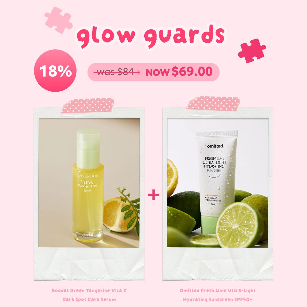 This duo brightens while shielding skin from daily damage. Goodal Dark Spot Serum targets hyperpigmentation as Omitted’s ultra-light sunscreen locks in hydration and protection - your ultimate defence for ready to love-luminous!