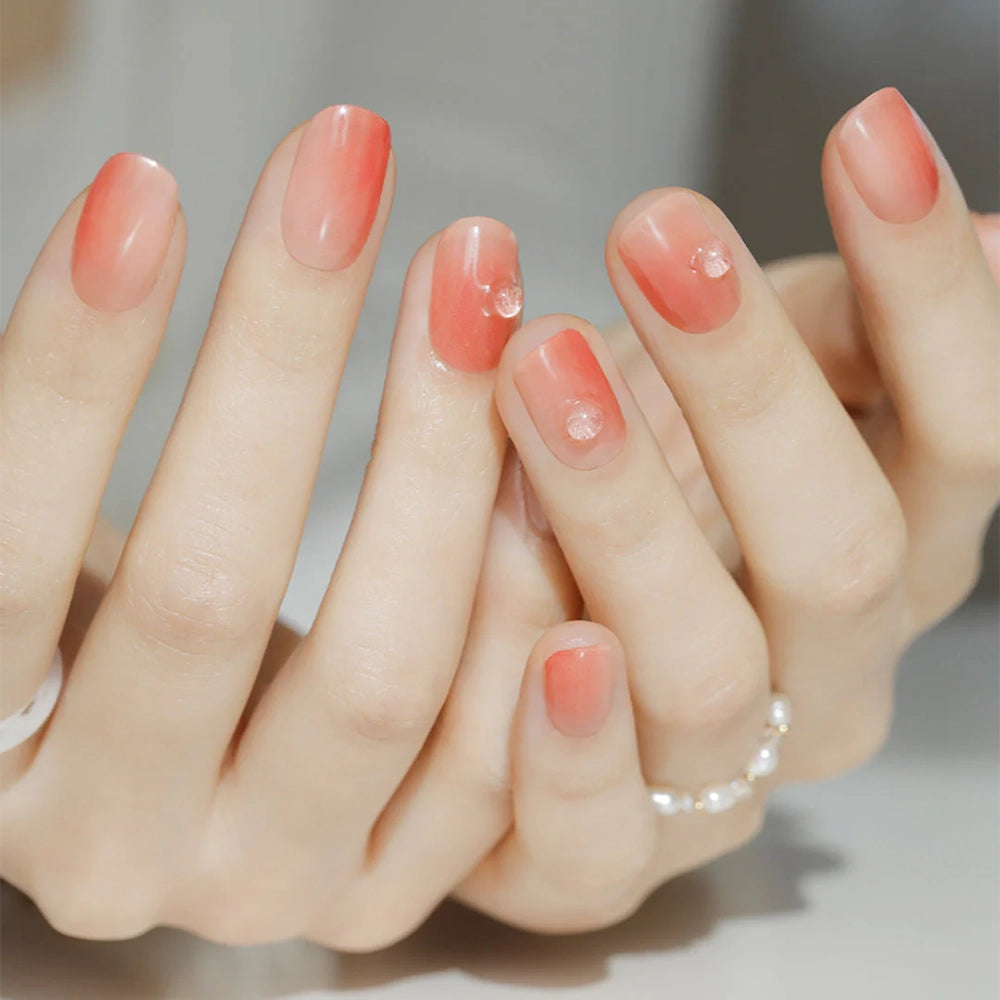 Inspired by blooming peonies in late spring, this look features a translucent coral marble base accented with a dewdrop-like detail. The soft, skin-flattering tones create a tender, airy impression—perfect for adding a fresh and delicate touch to your fingertips.
