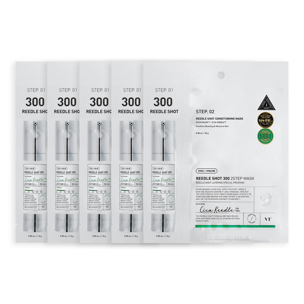 VT Cosmetics Mild Reedle Shot 2Step Mask features innovative mild micro-needle technology to deliver active ingredients deep into the skin. This ensures targeted treatment, promoting improved absorption for maximum results without irritation.